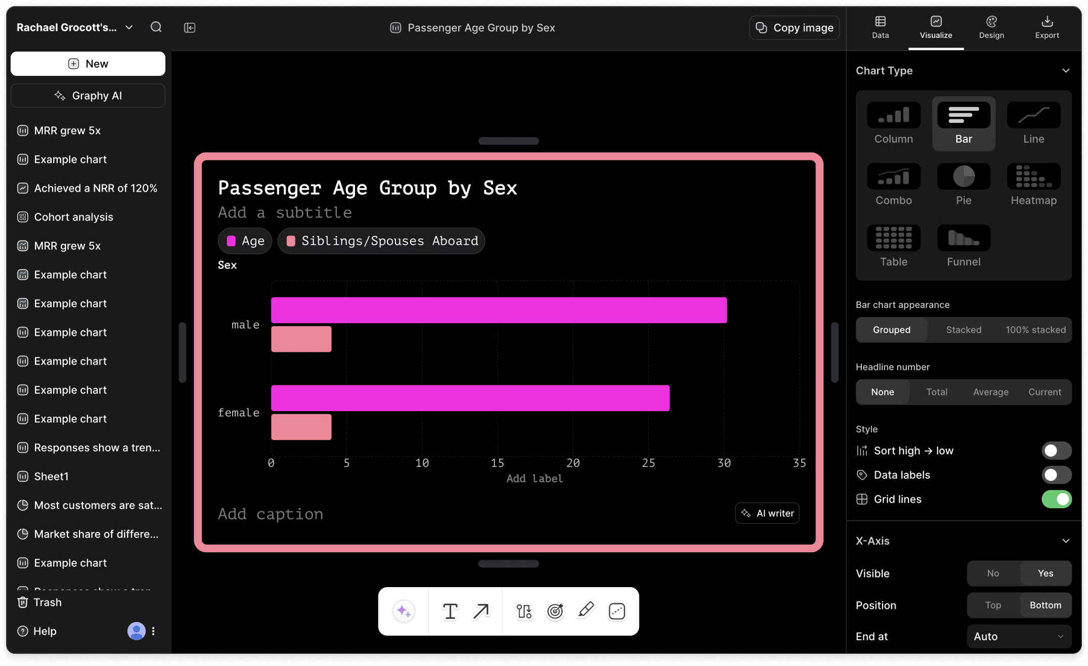 Once a user selects or refines a chart, we introduce what we believe is a best-of-breed hybrid model: a conversational co-pilot positioned next to traditional editing panels. Even though I personally love the potential of conversational AI, I also wanted to respect the speed and familiarity of direct UI controls for final tweaks. Sometimes it’s just more efficient to click a button than type out “Switch to a heatmap” so we want to give our users the option to do both. This balance between AI-driven suggestions and hands-on customization helps users feel both guided and in control at every step of the visualization process.
