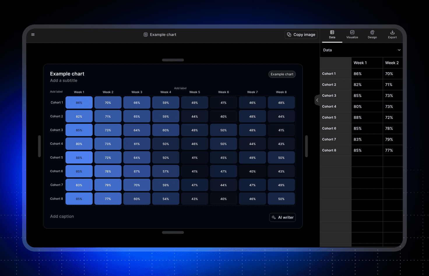 Graphy offers sleek, professional color gradients and templates, so your heatmap looks engaging without extra design effort.
