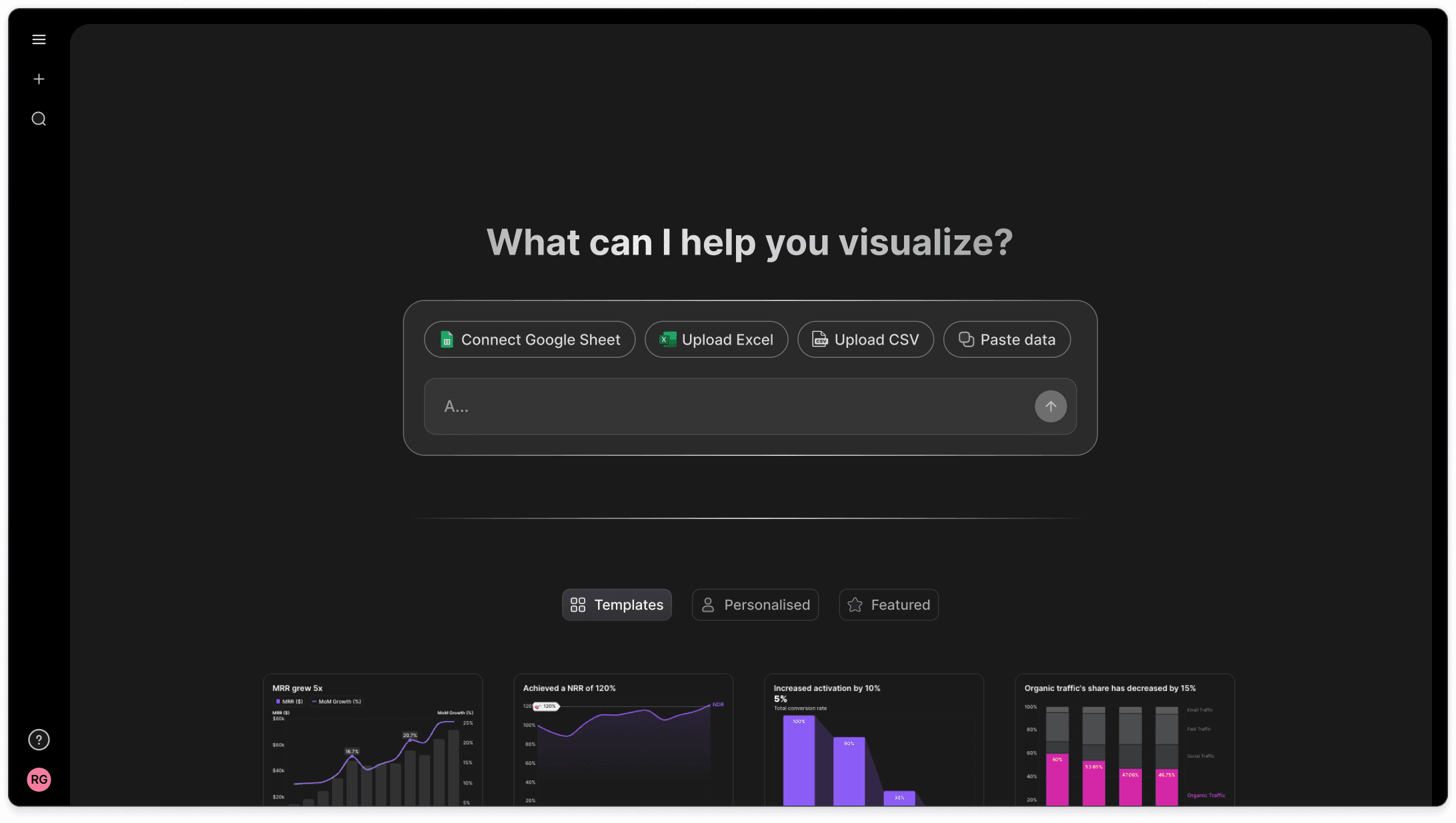 When designing our new input screen, we took cues from other AI-driven tools and purposefully chose a layout that feels approachable. Users can drop in any dataset or type a prompt, and the system does the rest. Under the hood, a powerful pipeline handles everything from CSVs with typos to half-structured spreadsheets.