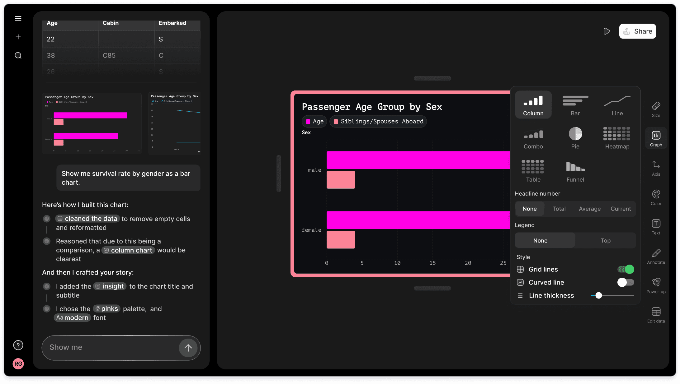 For now, we’re excited to see how an AI co-pilot approach transforms workflows. By letting users skip tedious data cleaning steps and then letting them decide whether to rely on AI or manual controls for visualization tweaks, we hope to make data storytelling more accessible, intuitive, and ultimately more valuable for everyone.