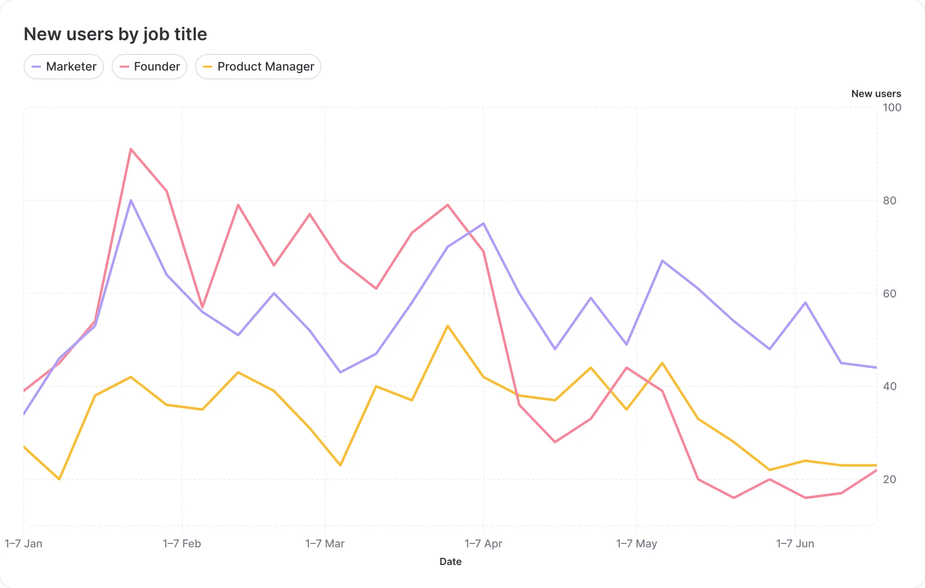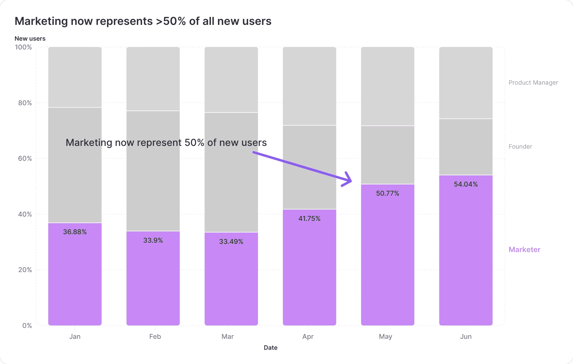 This shift in perspective can reveal hidden trends โ for example, an increase in marketers compared to other user types.