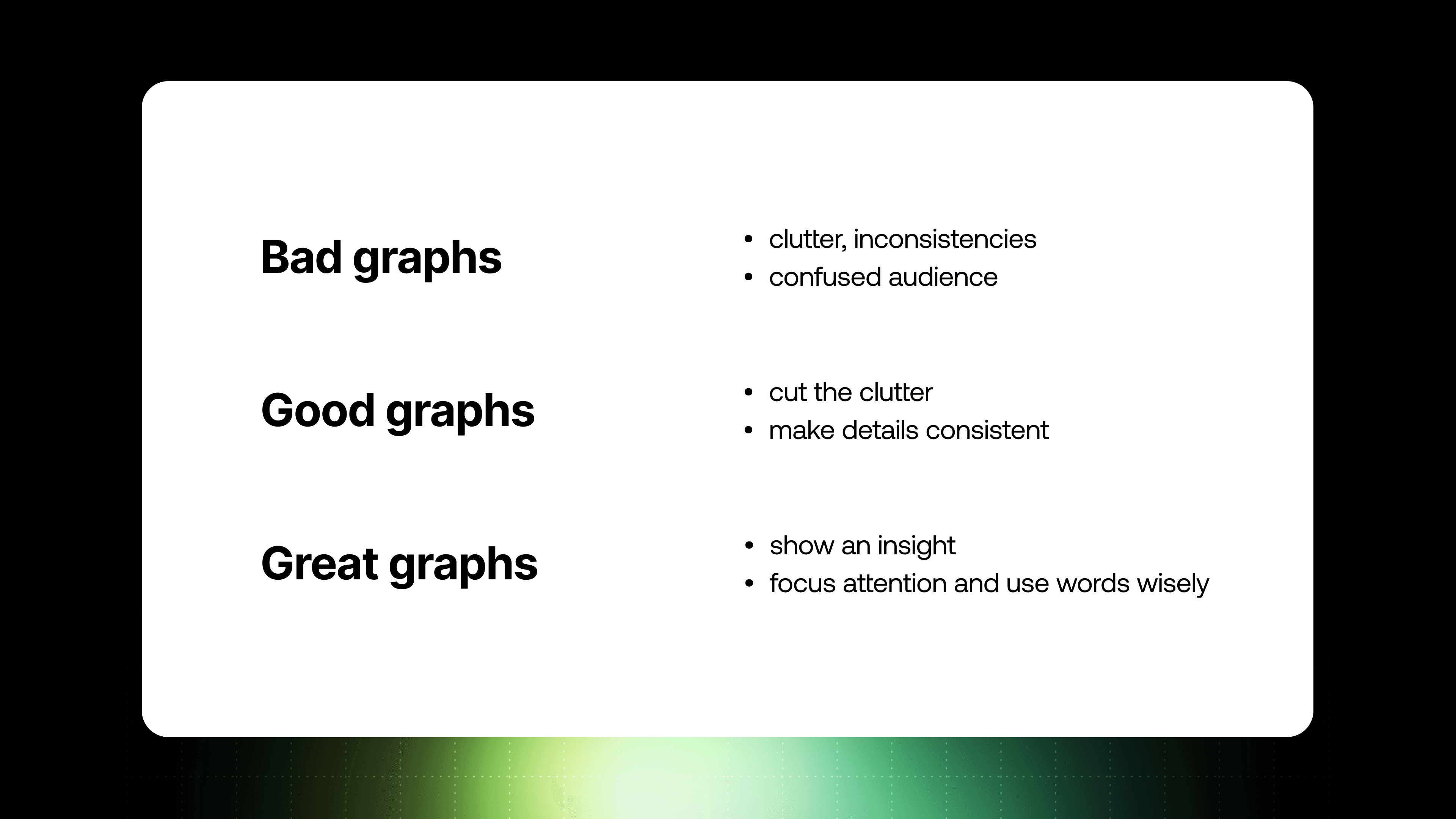 By following this simple process, you can transform cluttered, confusing graphs into compelling visuals that drive decisions.