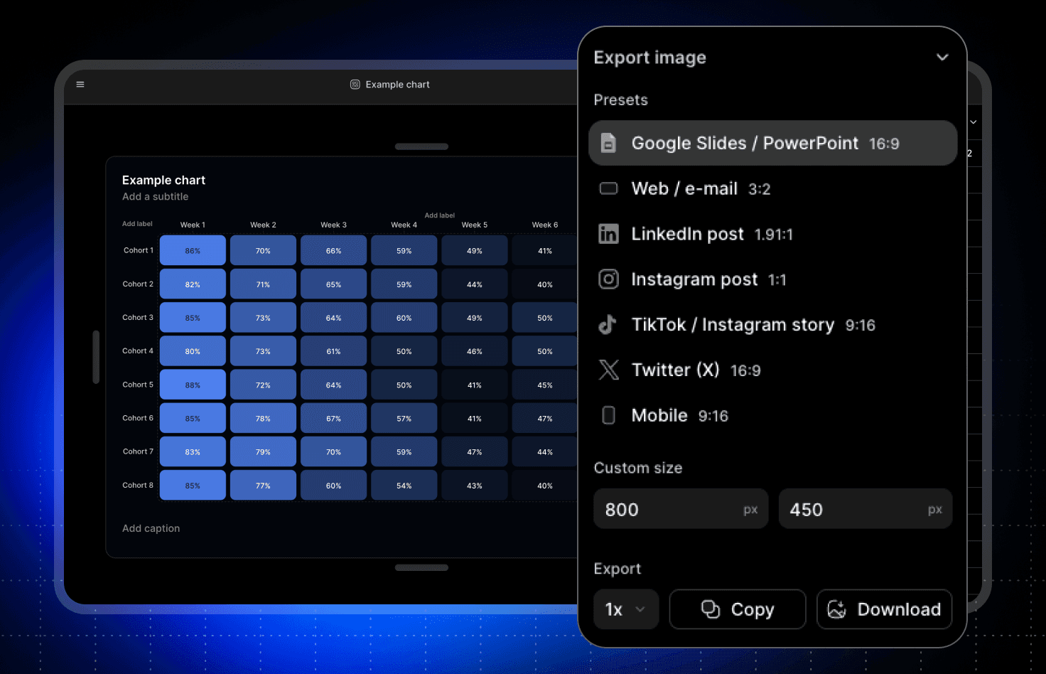 Graphy offers sleek, professional color gradients and templates, so your heatmap looks engaging without extra design effort.